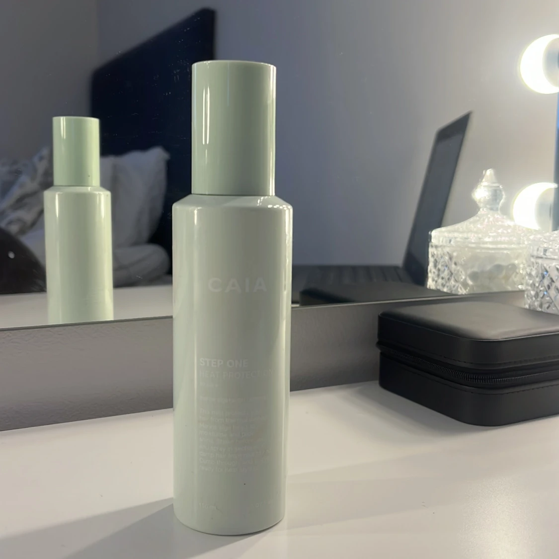 Snygg och stilren flaska från CAIA med värmeskydd för håret. Perfekt för att skydda mot värmeskador vid styling. Flaskan är ljusgrön och smidig att använda. Använd vid endast ett tillfälle så inprincip hela kvar!