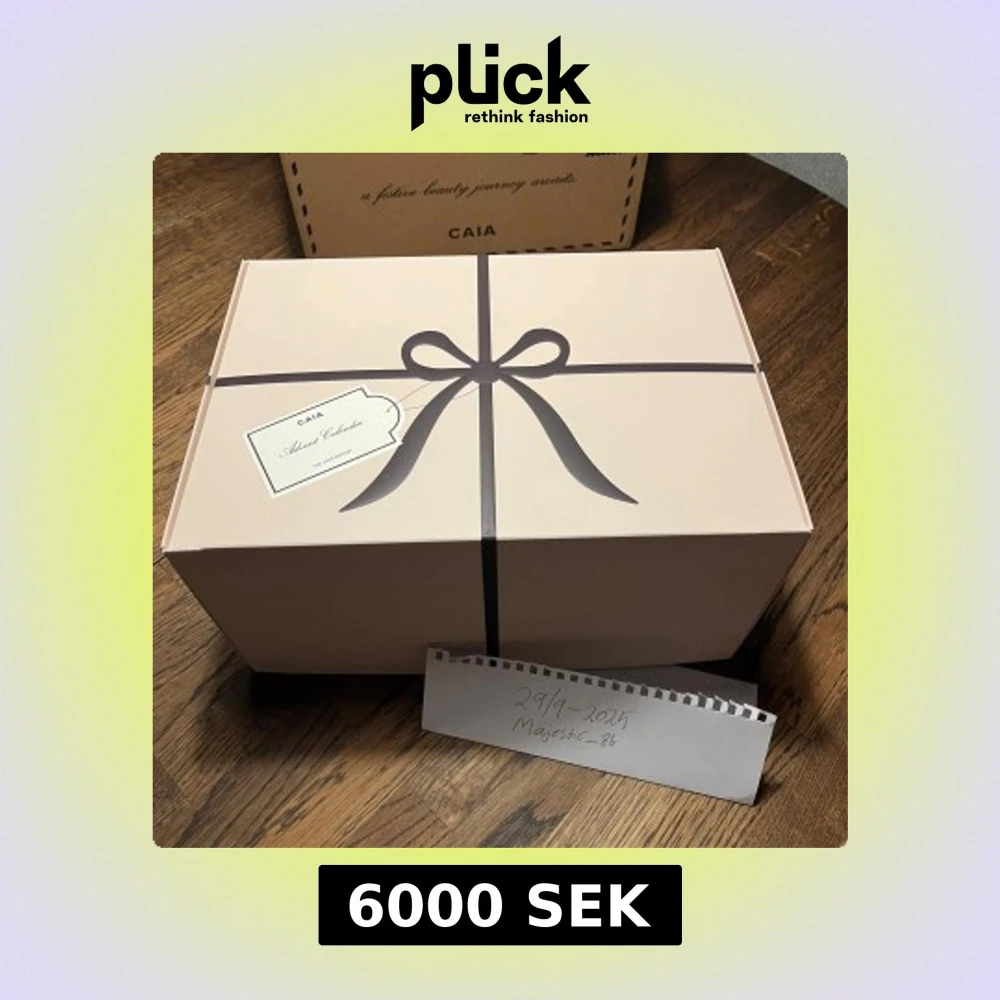 Säljer en exklusiv CAIA Advent Calendar 2025, fylld med olika sminkprodukter och skönhetsfavoriter. Kalendern kommer i en lyxig ljusrosa box med svart rosett och etikett. Perfekt för dig som vill testa flera CAIA-produkter i snygg förpackning.