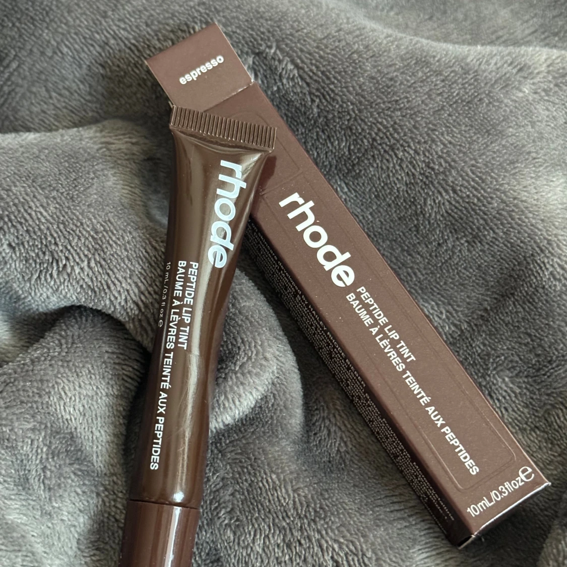 Helt ny Rhode Peptide Lip Tint i färgen Espresso, en brun tonad läppbalsam i tub. Ger läpparna en snygg brun nyans och återfuktar med peptider. Kommer i en stilren brun förpackning med vitt tryck. Perfekt för dig som vill ha både färg och vård till läpparna.