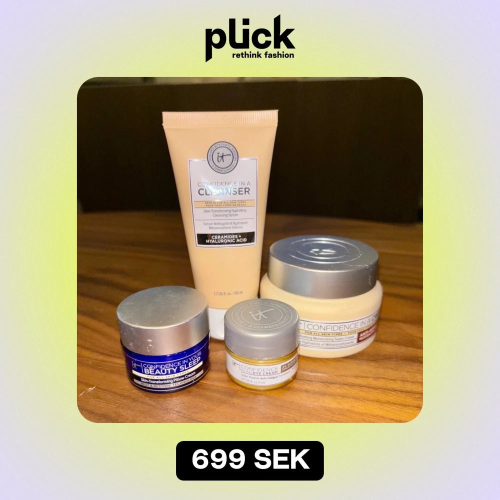 Ett hudvårdskit från it cosmetics med fullstor dagkräm och ögonkräm och resestorlek på nattkräm och cleanser. Endast testade. Nypris ca: 1500