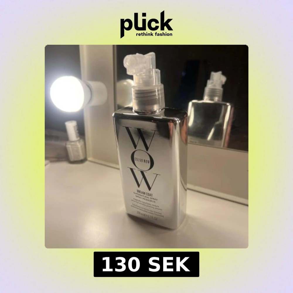 Endast testad, Color Wow Dream Coat är en silvrig sprayflaska med 200 ml produkt som används för att ge håret en slät och glansig finish. Flaskan har en modern design med svart text och ett praktiskt spraymunstycke. Perfekt för att tämja frissigt hår och skapa en glansig look.
