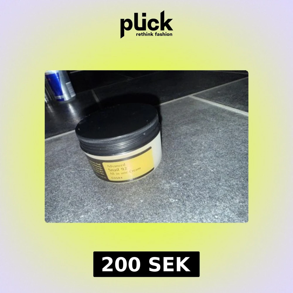 En ansiktskräm från COSRX med 92% snigelsekret, perfekt för att ge huden fukt och glow. Kommer i en rund burk med svart lock och gul etikett. Konsistensen är krämig och färgen är vit. Passar dig som vill boosta din hudvårdsrutin med koreansk beauty.