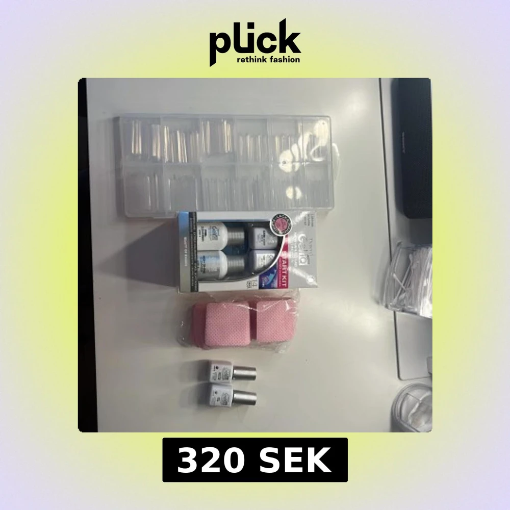 Depend GeliQ Startkit för gelnaglar med UV/LED-lampa, base coat, top coat, pre-cleanser och high shine cleanser. Inkluderar även flera flaskor gel och ett set med genomskinliga lösnaglar i olika storlekar. Perfekt för att fixa snygga naglar hemma. Kittet är lite använt 💕