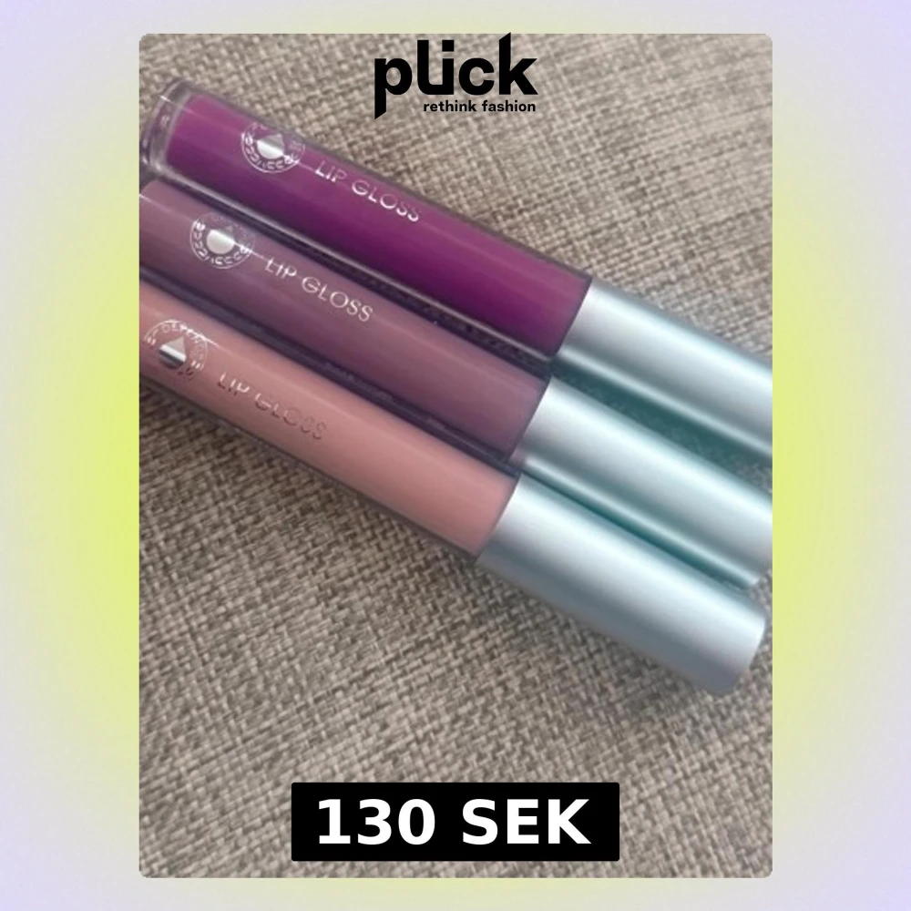 Säljer ett set med tre läppglans från Depend. Färgerna är lila, mauve och nude. Alla kommer i smidiga tuber med silverfärgade lock och transparent hylsa så du ser färgen tydligt. Perfekt för dig som vill variera din look med både färgstarkt och neutralt.