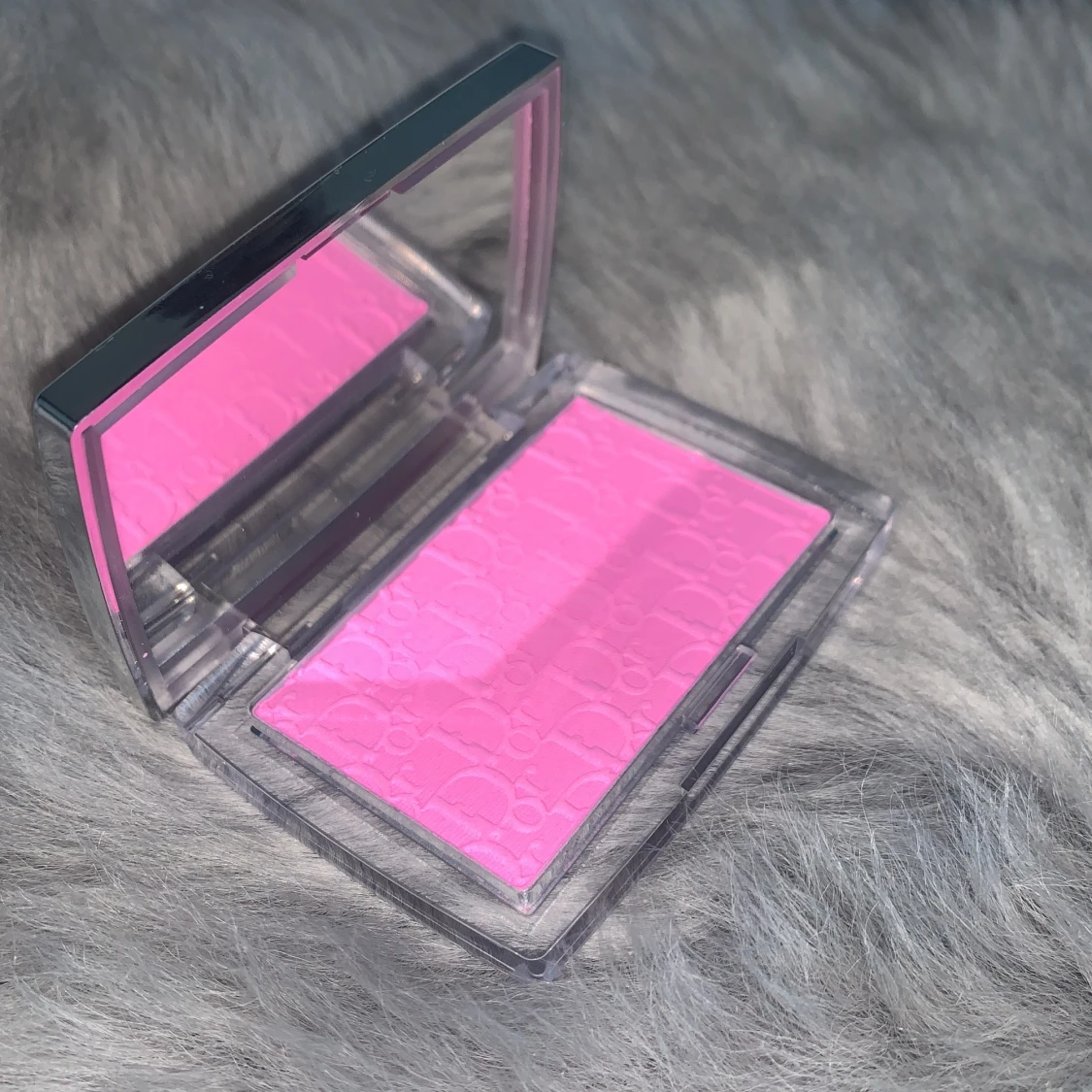 Dior Rosy Glow i nyansen 001 Pink är ett puderrouge i en snygg genomskinlig ask med spegel. Rouget har en intensivt rosa färg och är pressat med Diors ikoniska logomönster. Perfekt för att ge kinderna en fräsch och naturlig glow.testat 2-3 gånger