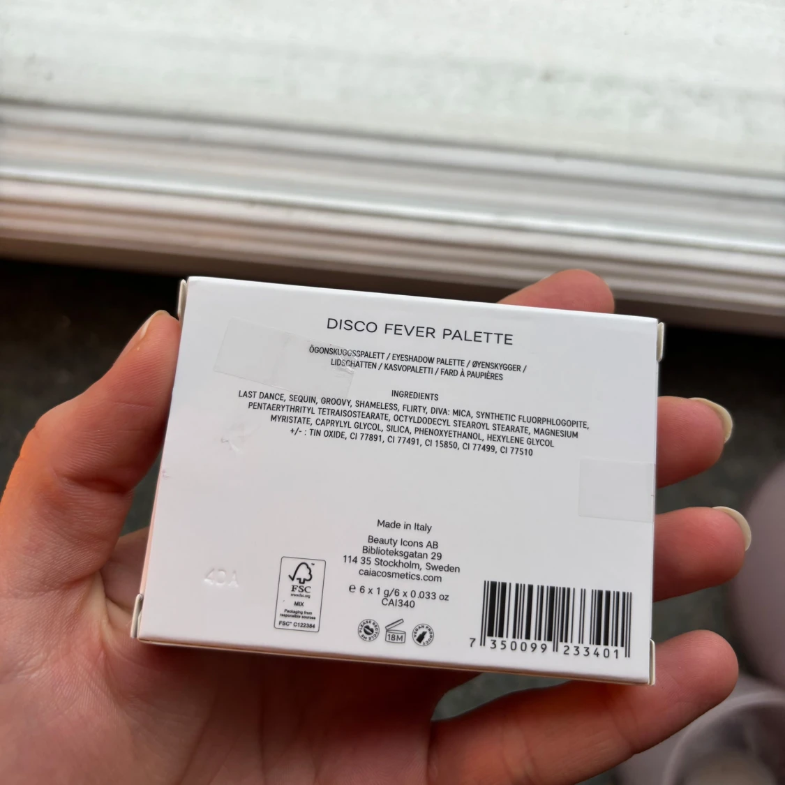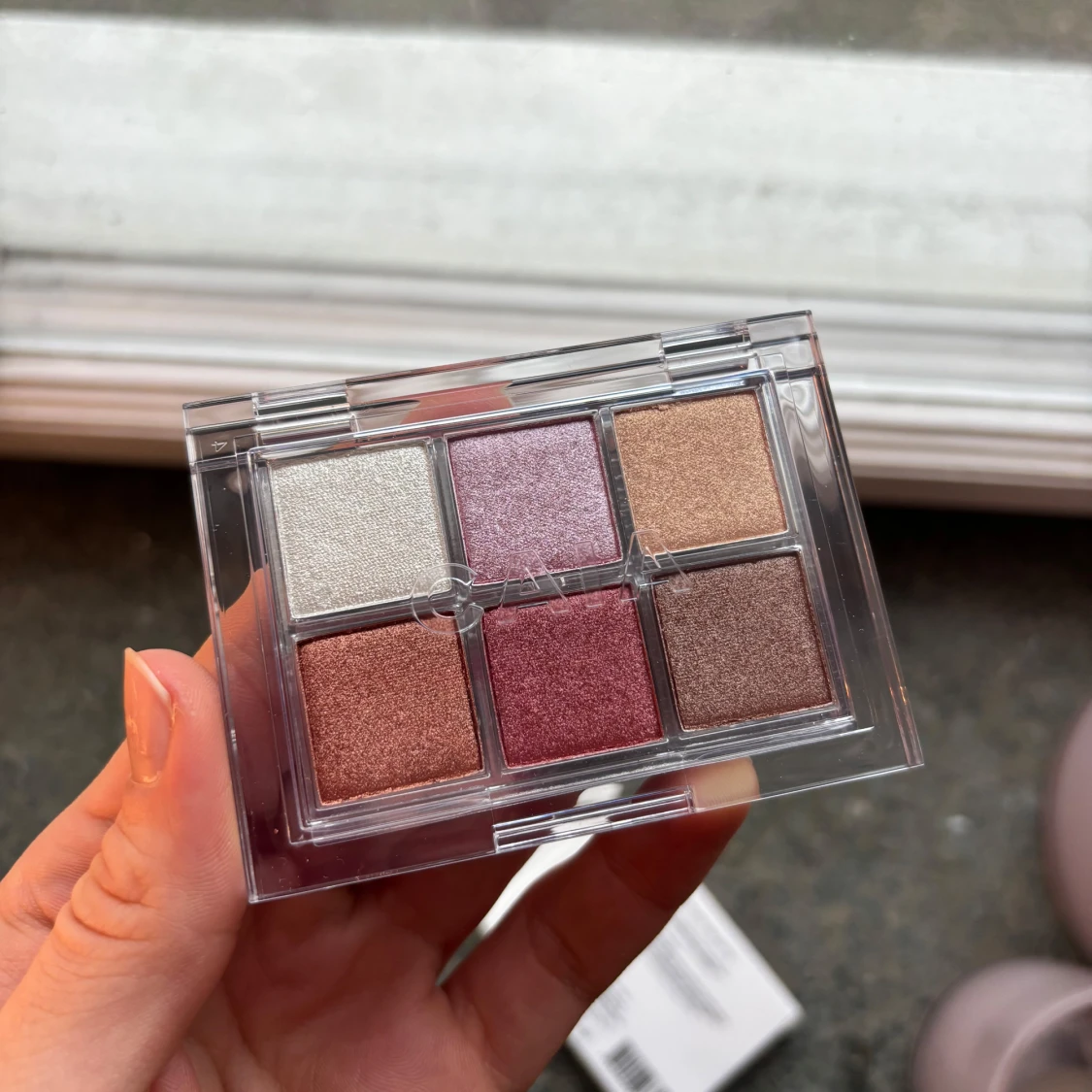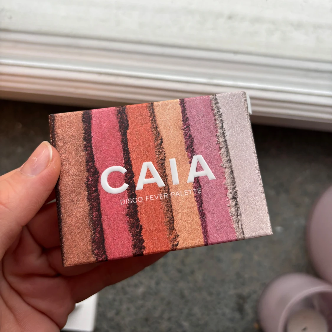 Snygg ögonskuggspalett från CAIA med sex skimrande nyanser i silver, rosa, brons och koppar. Perfekt för att skapa glamorösa och festliga looks. Kompakt och lätt att ta med sig. Aldirg använd.