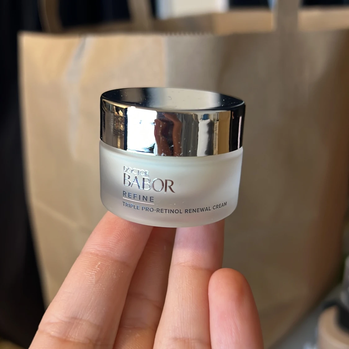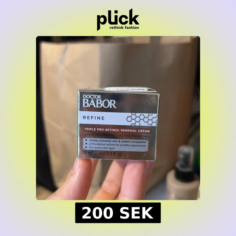 Doctor Babor Refine Triple Pro-Retinol Renewal Cream i en lyxig liten burk på 15 ml. Kommer i frostat glas med silvrigt lock och förpackning. Innehåller tre olika retinol-aktiva ämnen för en jämnare och fräschare hudton. Perfekt för dig som vill boosta din hudvårdsrutin. Nypris ca 500kr. Helt oanvänd.