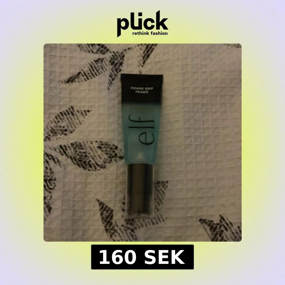 e.l.f. Power Grip Primer i en genomskinlig blågrön tub med svart lock och pump. Primern har en gel-liknande konsistens och är perfekt för att få sminket att sitta längre. Snygg och praktisk för dig som vill ha en flawless bas.