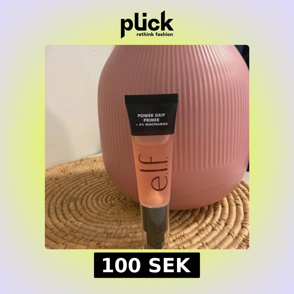 Power Grip Primer från e.l.f. med 4% niacinamide. Kommer i en genomskinlig tub med svart lock och svart etikett. Primern har en lätt rosa ton och är perfekt för att skapa en jämn bas innan smink.