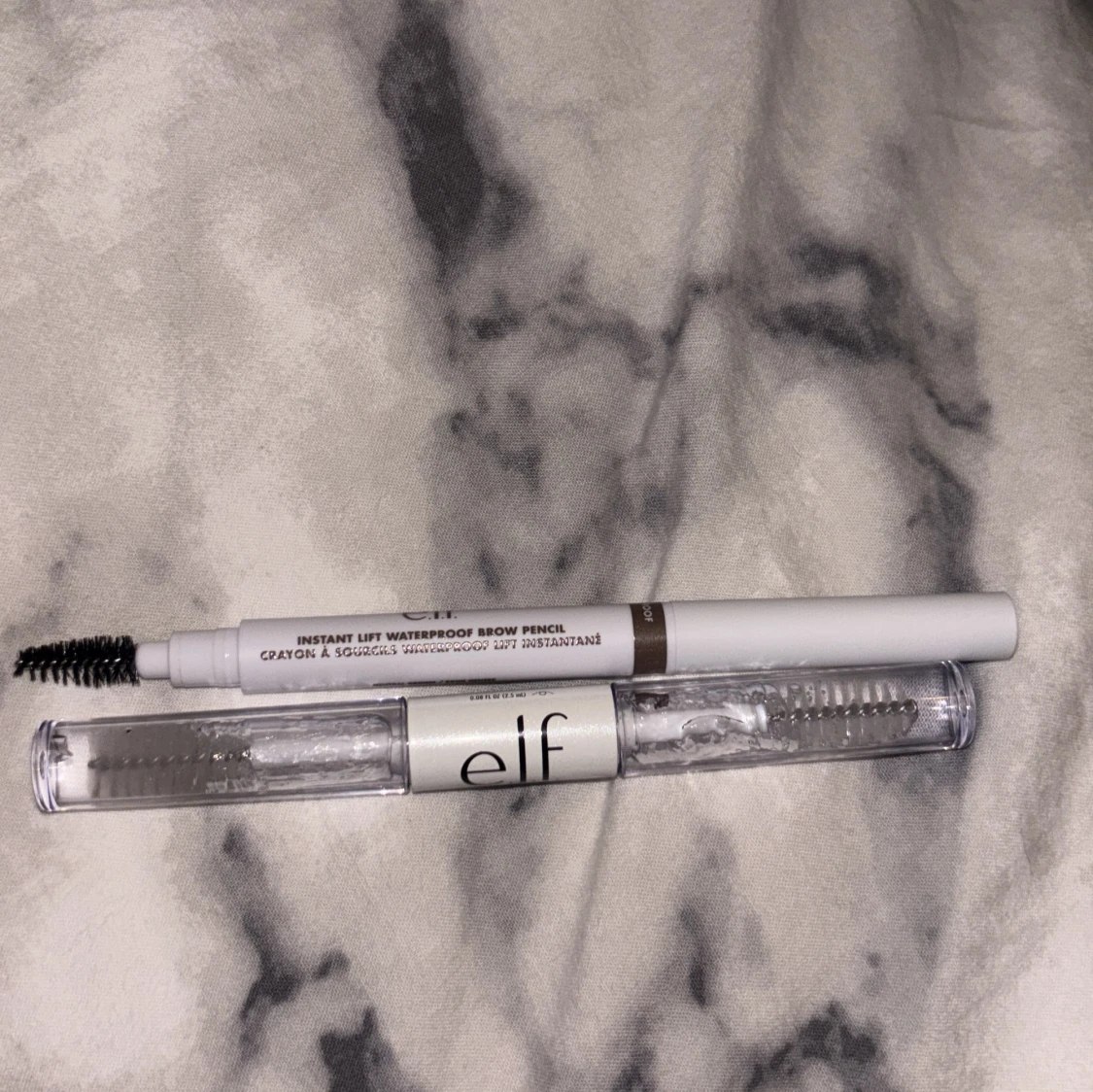 Säljer ett set med e.l.f. Instant Lift Waterproof Brow Pencil i brun nyans och en transparent e.l.f. brow gel. Pennan har borste i ena änden och gelén kommer i tub med applikator. Endat använd en gång på båda produkterna känner att det inte var min grej 100kr för båda! ☺️