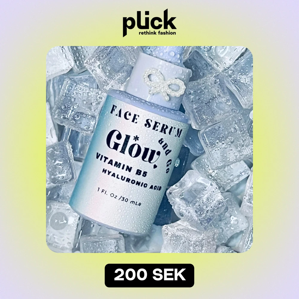 Säljer ett lyxigt ansiktsserum med Vitamin B5 och hyaluronsyra för en strålande hy. Flaskan är ljusblå med en söt pärldetalj i form av en rosett på pipetten. Perfekt för att ge huden extra fukt och lyster. Innehåller 30 ml.