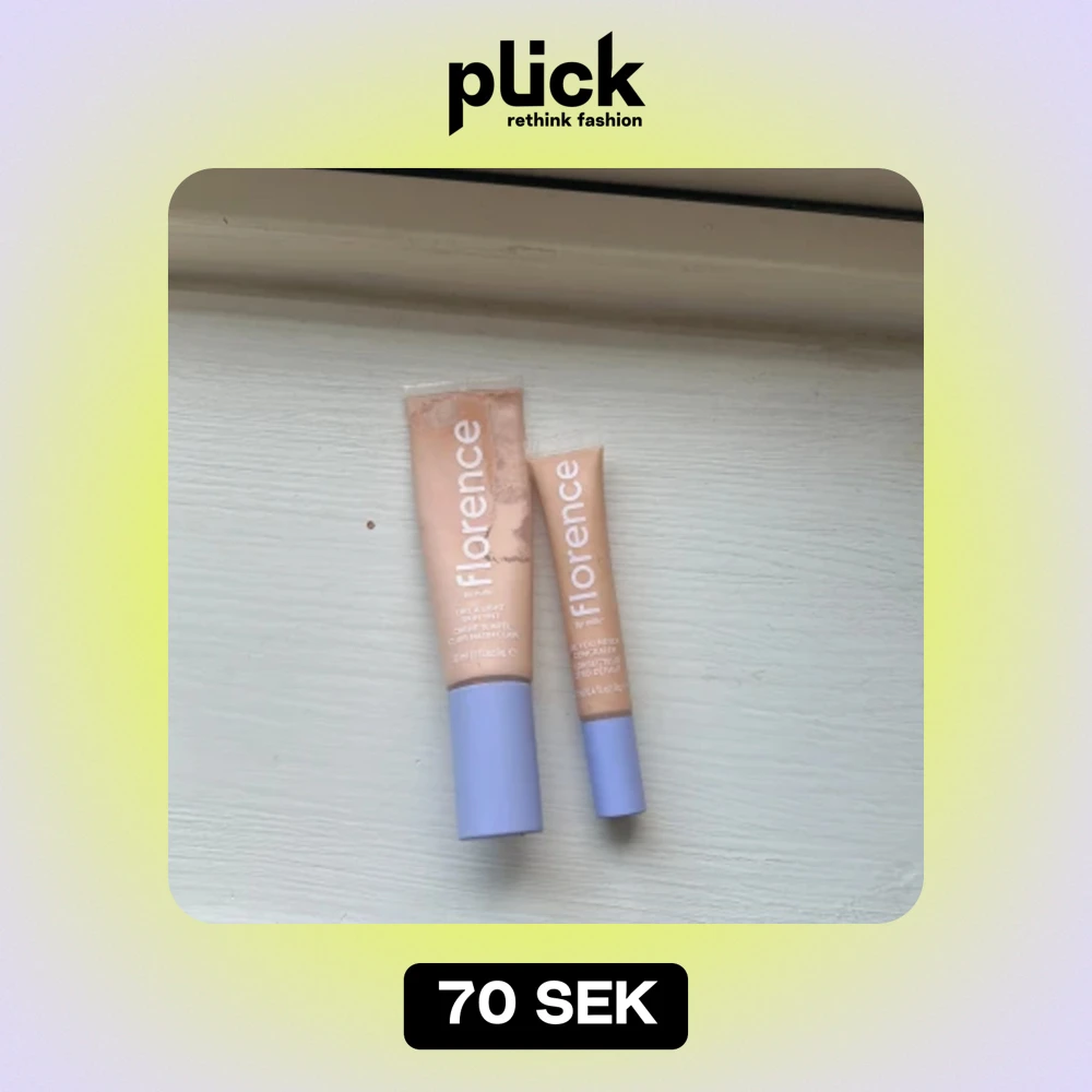 Två Florence produkter, en foundation med medium coverage och en concealer med high coverage. Concealern är färg FO15 och foundationen är färg FO10. Båda har använts ungefär 5 gånger. Original pris för båda är: 341kr ❤️