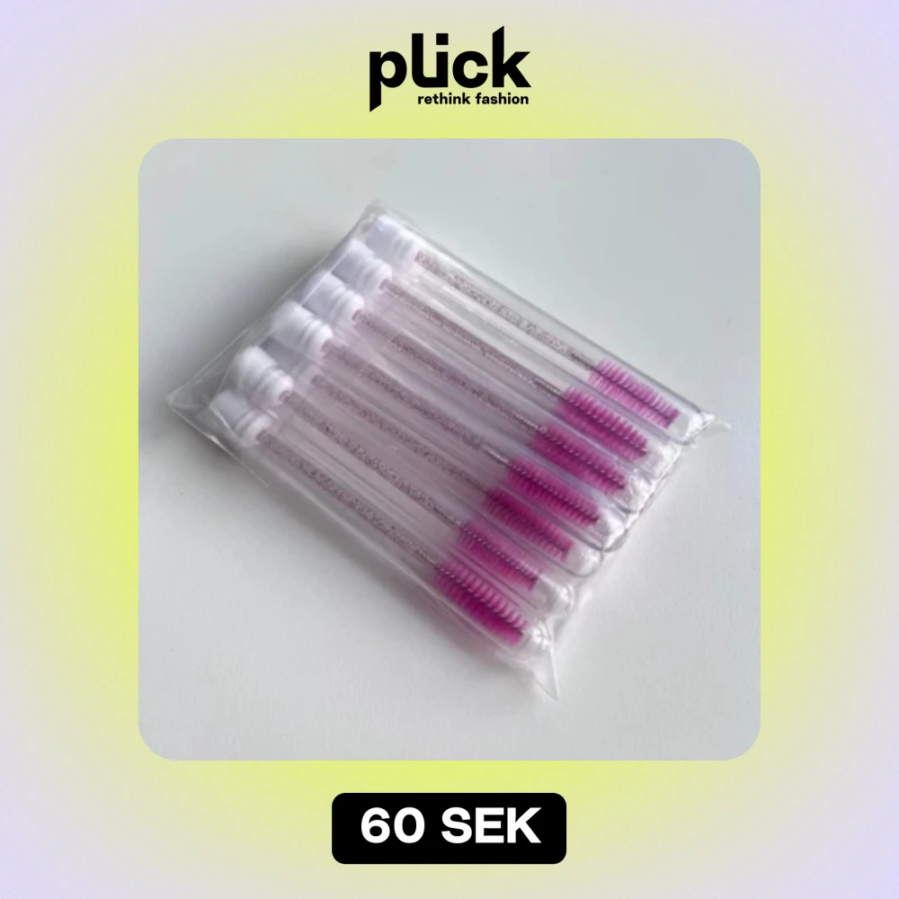 Ett 10-pack med rosa fransborstar (spoolies). Varje enskild borste har en hårdplast runt sig för att skydda från smuts och damm. Passar utmärkt till att borsta ögonbrynen eller fransförlängningen 🫶🏻🩷 ALDRIG ANVÄNDA! Längd: 11 cm