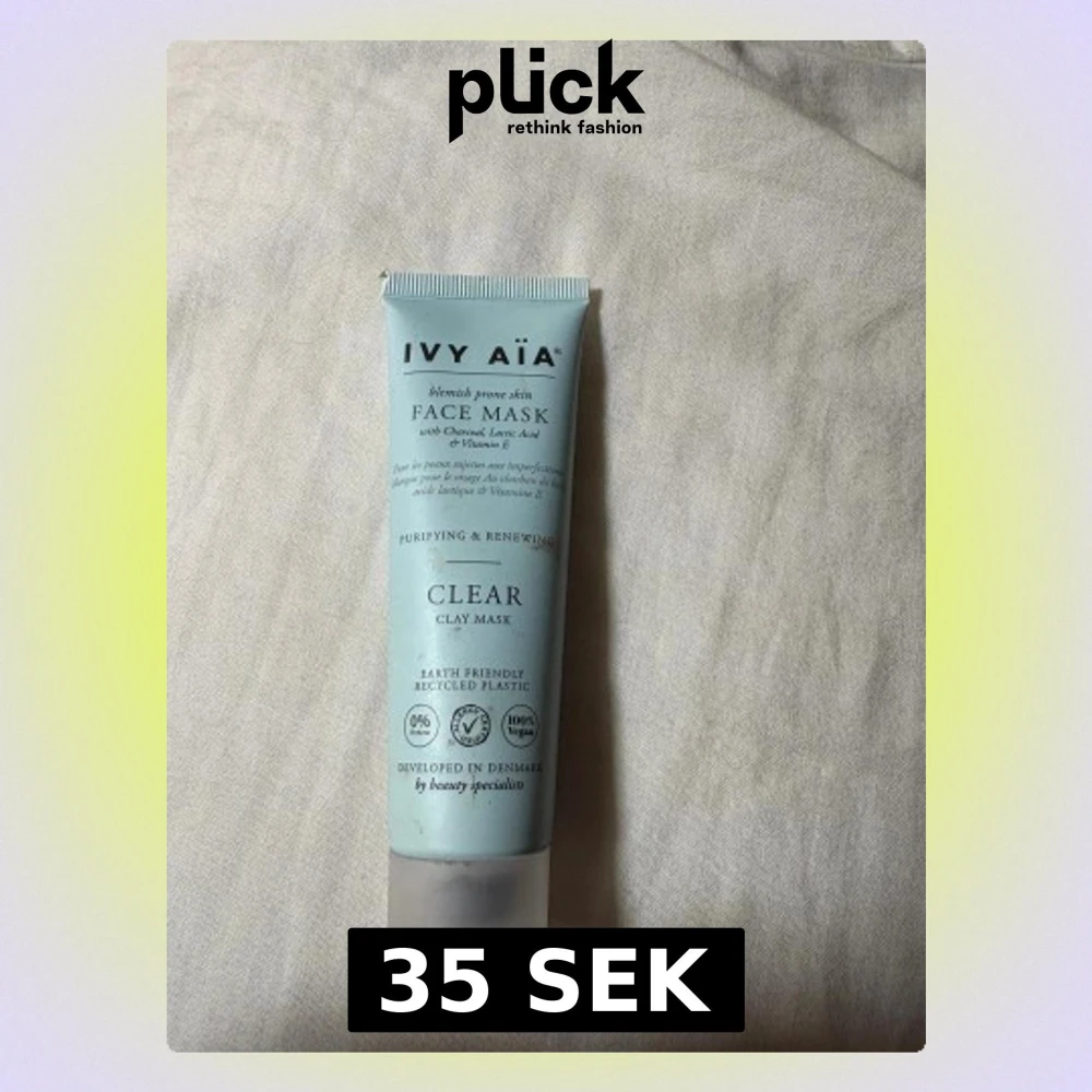 En ljusblå ansiktsmask i tub från IVY AIA, speciellt framtagen för hud med blemmor. Innehåller kol, mjölksyra och vitamin E. Tuben är gjord av återvunnen plast och är 100% vegansk och parfymfri. Perfekt för dig som vill ha en ren och fräsch känsla. Använd en gång