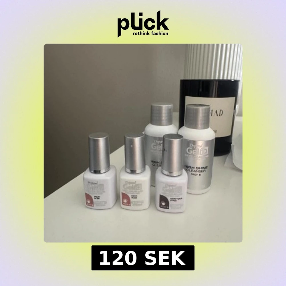 Säljer tre färger och två st ”high shine” från Depend då de inte kommer till användning!😊 * Deco rose, 1 oöppnad 1 testad * Own your style, testad * High shine, 1 oöppnad 1 testad, ca 80% kvar De har märken på sig då de legat i en låda, men inget som påverkar funktionen. Nypris för allt 300kr +, säljer gärna allt för 120kr