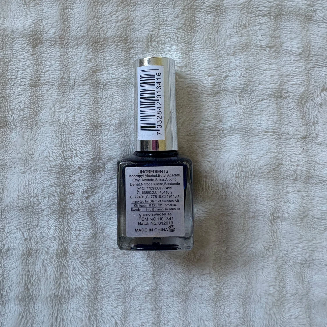 Nagellack från Glam of Sweden i en djupblå nyans med glansig finish. Kommer i en fyrkantig glasflaska med silverfärgat lock. Innehåller 15 ml och är perfekt för dig som vill ha snygga, markerade naglar.