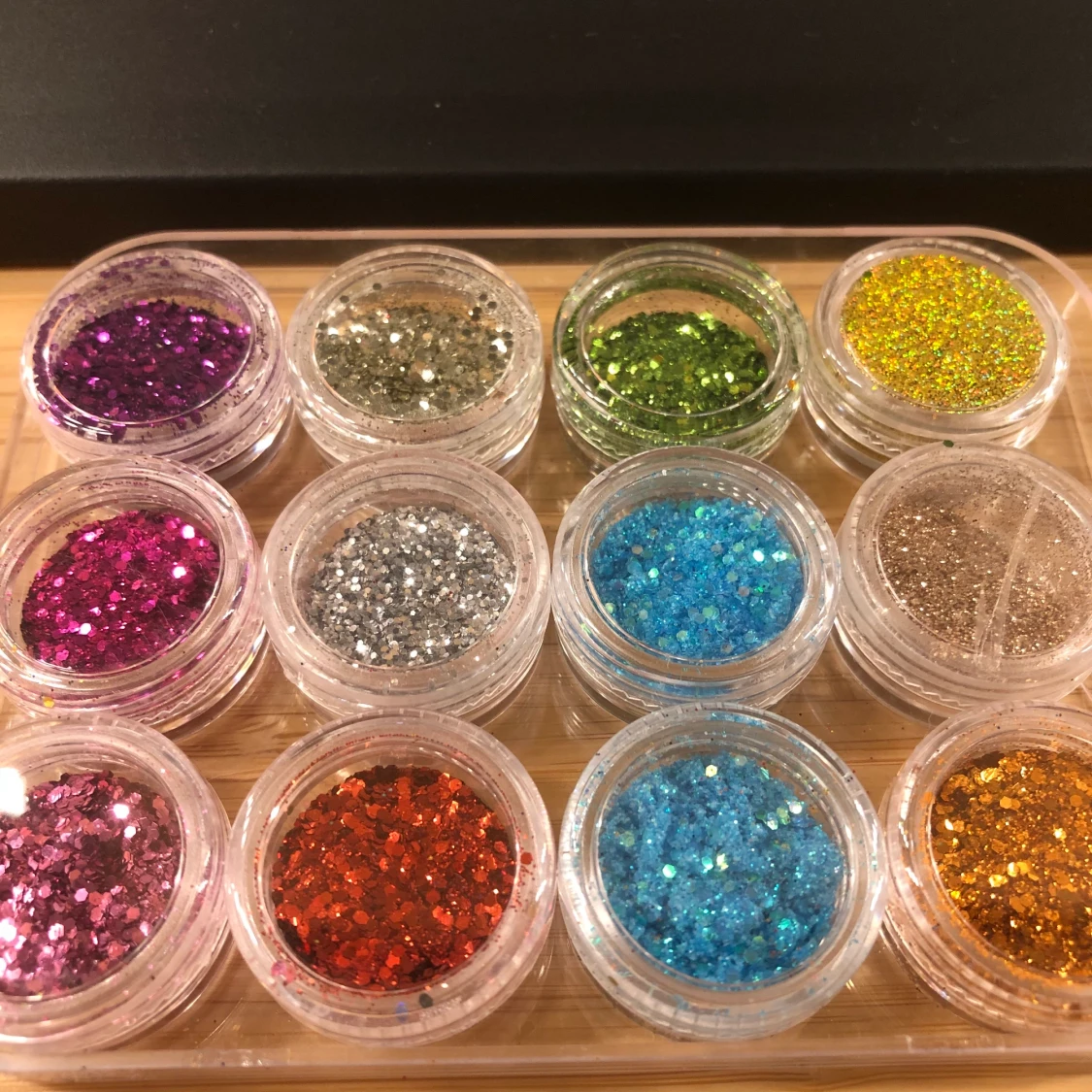 Underbart fint glitter som passar till nagellack eller också sminket, det är bara fantasin som sätter stopp för vad man kan hitta på! 10kr/st eller 3 för 2:)❤️🧡💛💚💙💜