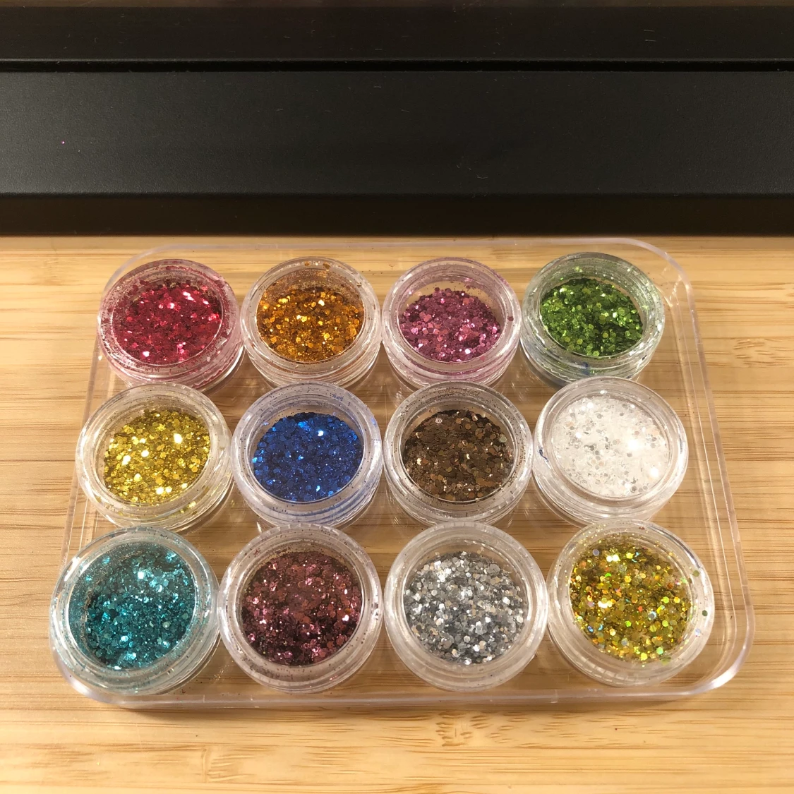Underbart fint glitter som passar till nagellack eller också sminket, det är bara fantasin som sätter stopp för vad man kan hitta på! 10kr/st eller 3 för 2:)❤️🧡💛💚💙💜