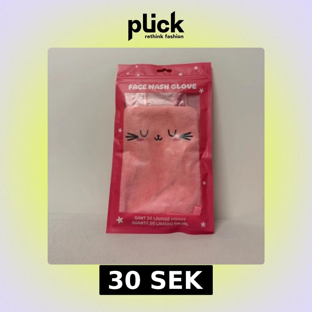 Supersöt rosa ansiktstvättshandske i mjuk polyester med broderat kattansikte och små glittriga öron. Perfekt för att rengöra ansiktet på ett gulligt sätt. Kommer i en stjärnmönstrad förpackning. Enkel att använda och tvätta.