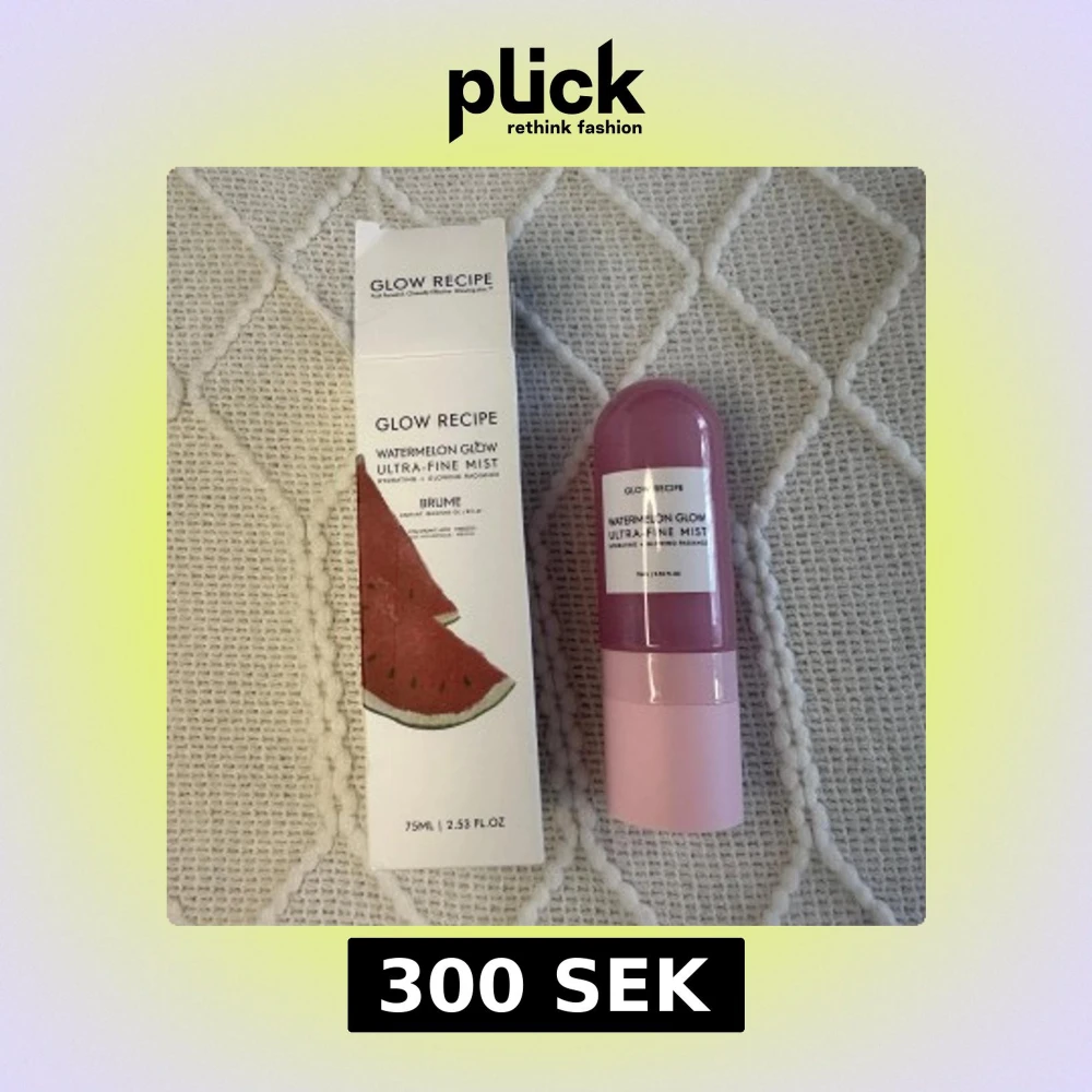 Glow Recipe Watermelon Glow Ultra-Fine Mist, 75 ml. Snygg rosa flaska med vit etikett och tillhörande förpackning med vattenmelonmotiv. Ger återfuktande och strålande finish till huden. Perfekt att spraya över ansiktet för extra glow. Oanvänd