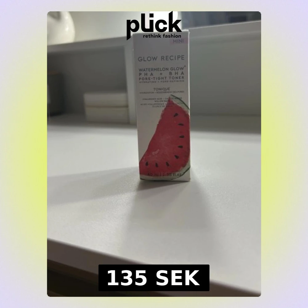 Glow Recipe Watermelon Glow PHA + BHA Pore-Tight Toner i miniformat, 40 ml. Kommer i en söt rosa plastflaska med skruvlock och en förpackning med vattenmelonmotiv. Tonern innehåller hyaluronsyra, kaktusvatten och willow bark för återfuktning och porsammandragning.
