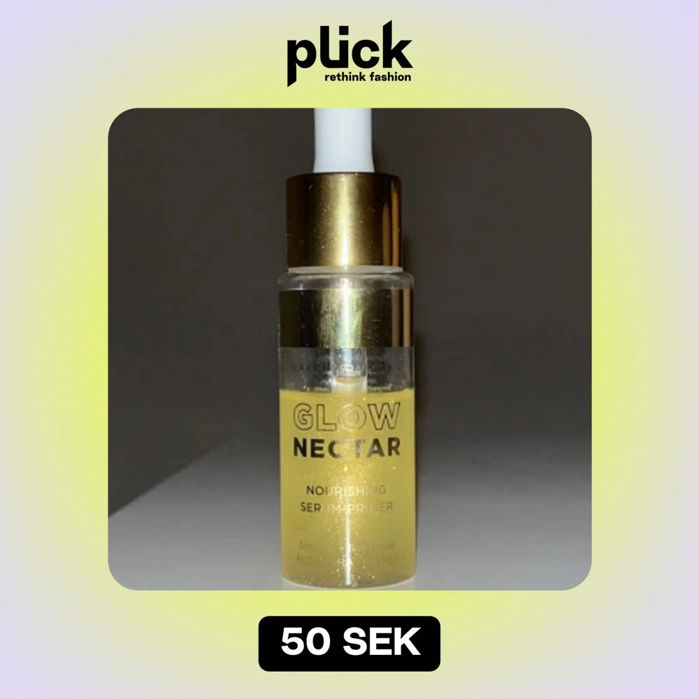 En glow serum primer ifrån makeup mekka. Den ger ett fint glow, för den har små guldpartiklar som löses upp när man skakar den. Använd 2-4 ggr. Ungefär 90% kvar. Innehåller aloe Vera. Skriv för mer frågor 💓