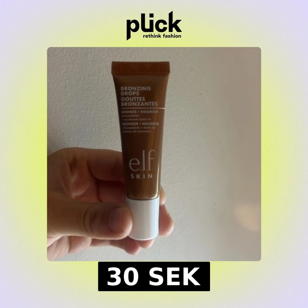 Bronzing Drops från e.l.f. i nyansen Pure Gold. Flytande formula i tub med skruvkork, ger en solkysst glow till huden. Innehåller antioxidanter och solrosfröolja. Perfekt att blanda i din dagkräm eller foundation för extra lyster. 10 ml, oanvänd. Säljer för att bli av med saker.