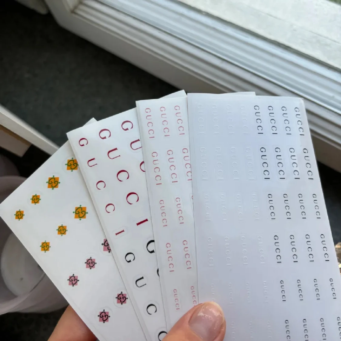 Gucci nagelstickers i olika färger och mönster, jättesöta. Väldigt fina och jättelätta att sätta på nageln. Har inte använt några av dem så den är helt som ny!