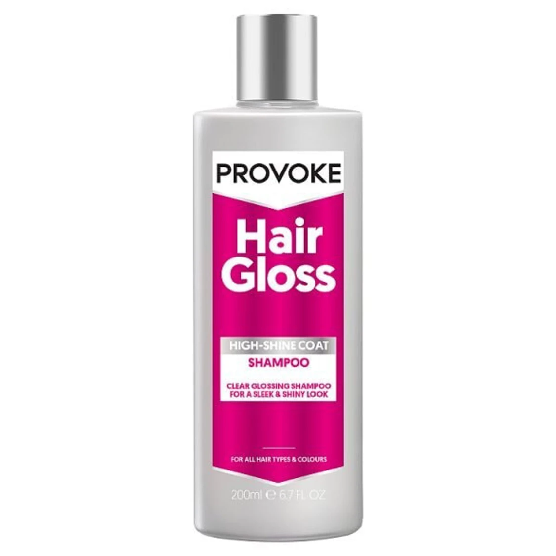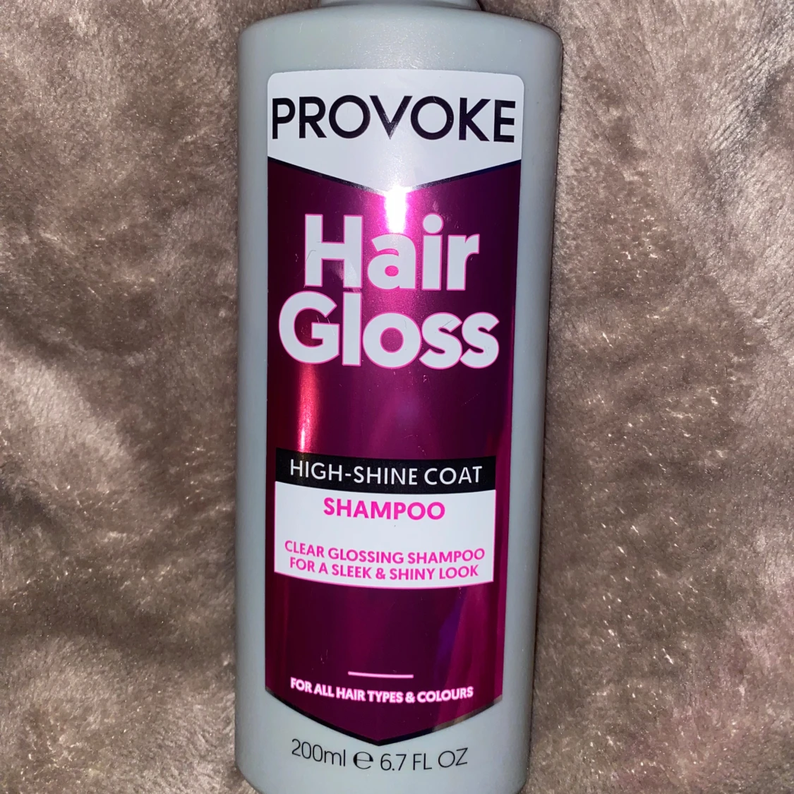 (Säljer billigt för har använt ett par gånger 😊) Glansgivande schampo från PROVOKE i en silverfärgad plastflaska med rosa etikett. Ger ett glansigt och slätt resultat för alla hårtyper och färger. Innehåller 200 ml.