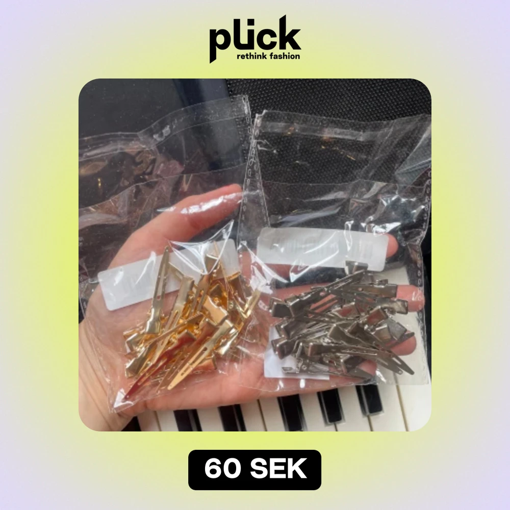 Hårspännen så fina!!! I metall. Har jättemånga och man får både de silvriga och guldiga.