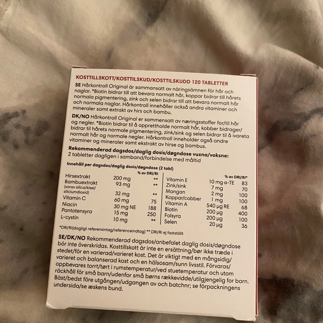 Hårkontroll Original är ett kosttillskott med 120 tabletter, innehållande silica, vitaminer och mineraler för hår och naglar. Produkten är oöppnad och i gott skick. ny pris 200kr skriv gärna kring frågor eller buda gärna