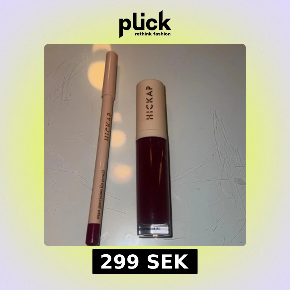 Säljer ett set med Hickap Dewy Lips Velvet Gloss och Mad Precision Lip Pencil i färgen Plum Jam. Båda har en djup plommonlila nyans och stilren beige förpackning med gulddetaljer. Läppglanset har en mjuk, sammetslen finish och pennan är krämig för exakt applicering. 100% veganska produkter. 🤩ordinarie pris- läpp pennan:119kr läpp gloss:199kr så för båda två ordinarie pris 318 men jag säljer för 249kr