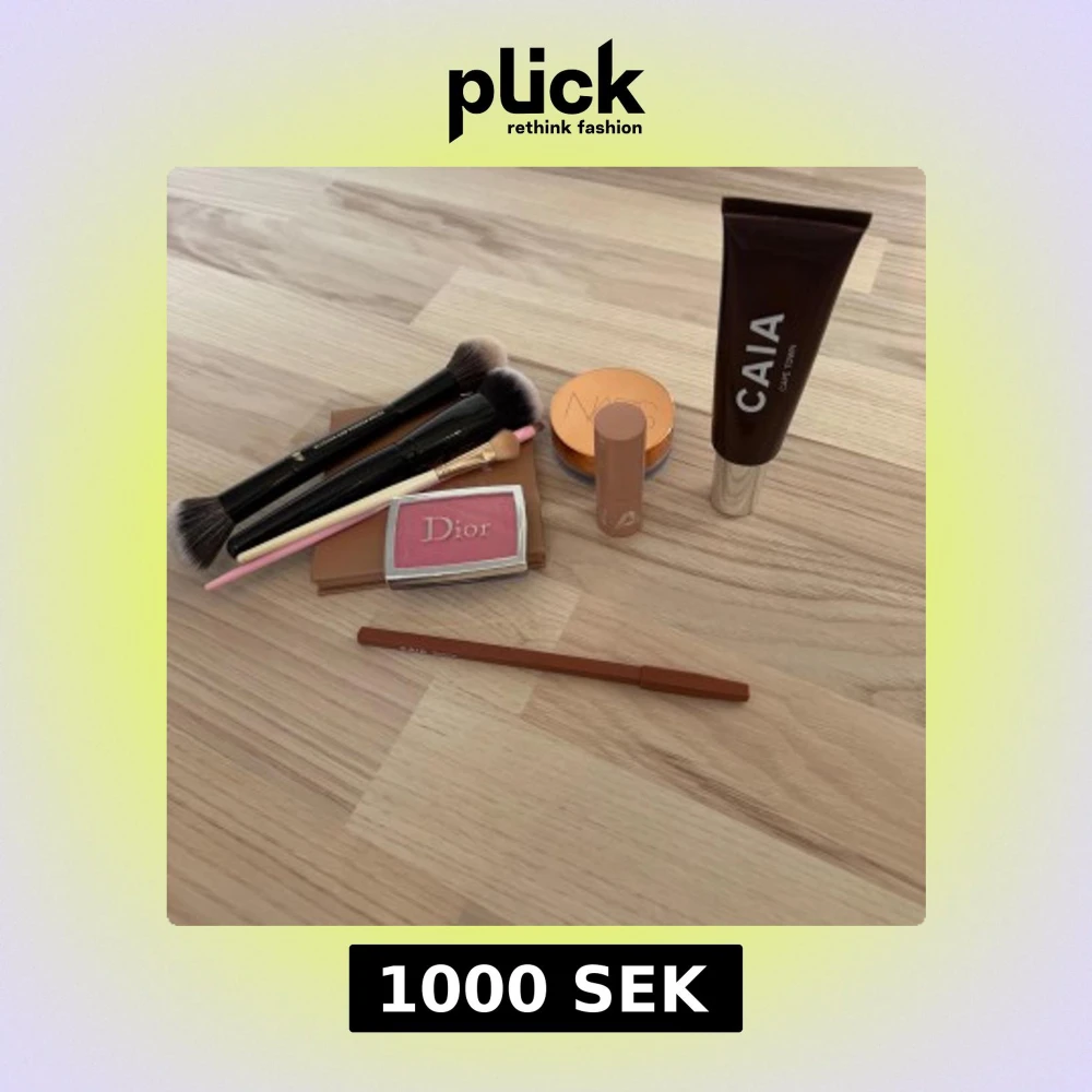 SÄLJER EJ STYCKVIS! Rensar pga flytt och säljer detta smink som ett kit, EJ var för sig. Märken: Caia (Classy palette, liquid bronser cape town, läppstift - Chic, läpppenna - Bianca, lip oil juicy - helt ny!), Nars (Laguna 02 bronzing cream) Dior (backstage rosy glow blush) och borstarna är blandade, b.la från H&M, kicks och brushworks. Produkterna är testade men ej använda. Se skick själva och/eller skriv för fler bilder. Har även hårklämmor jag kan skicka med!Värdet är runt 3000 kr vid nypris💕