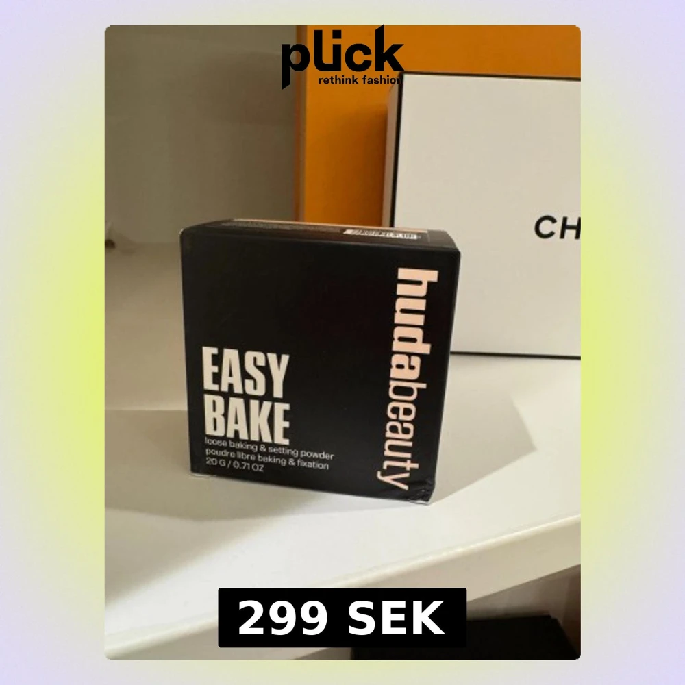 Loose baking & setting powder från Huda Beauty i nyansen Cupcake. Kommer i en svart fyrkantig förpackning med ljusrosa text. Perfekt för att fixera sminket och ge en matt finish. Innehåller 20g puder.