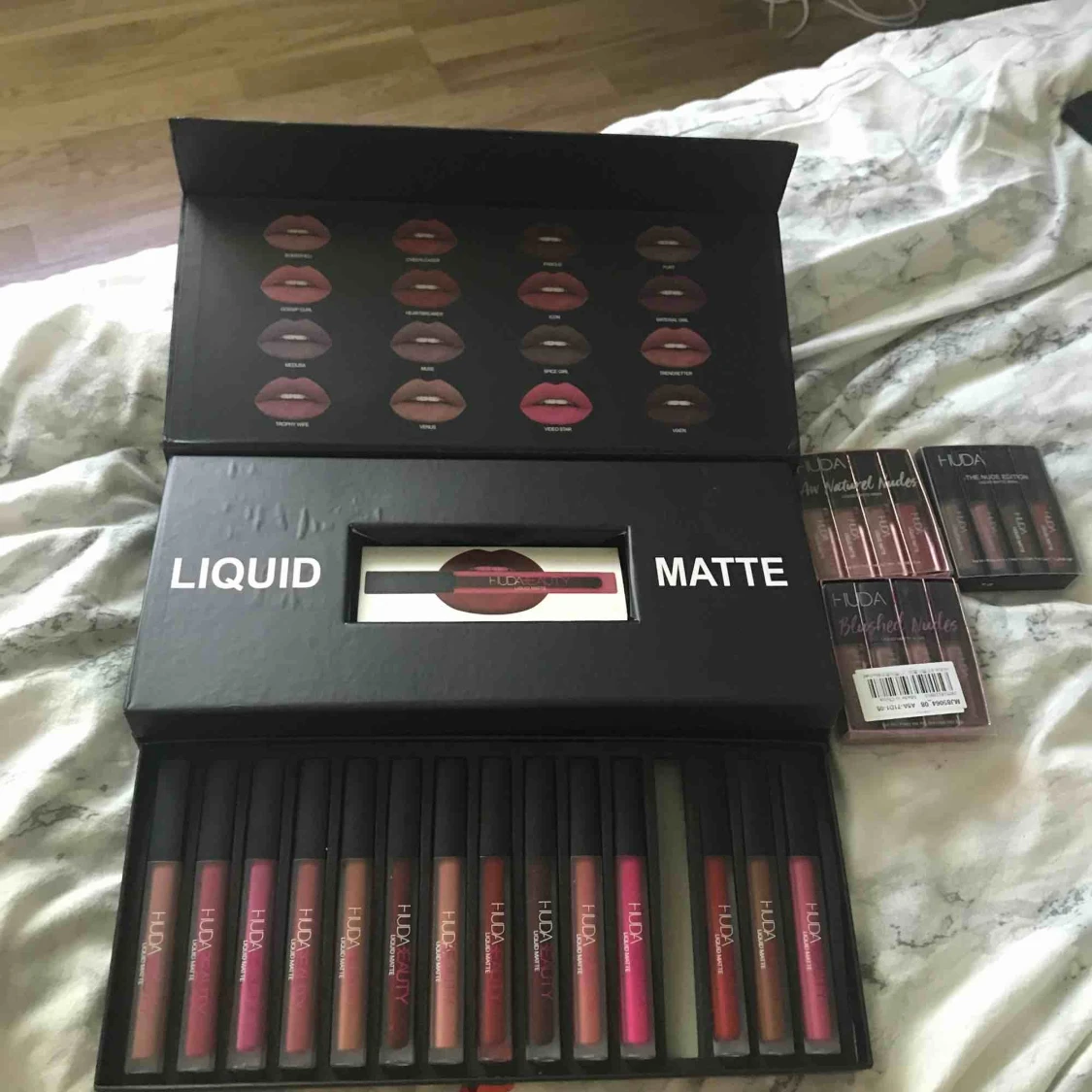 läppstift har endast använt en och den har jag tagit ut ur förpackningen säljer dom styckpris från original Huda beauty i USA Allt smink jag säljer är oöppnat. Vid intresse fråga vilka färger och va dom kostar från 50 kr