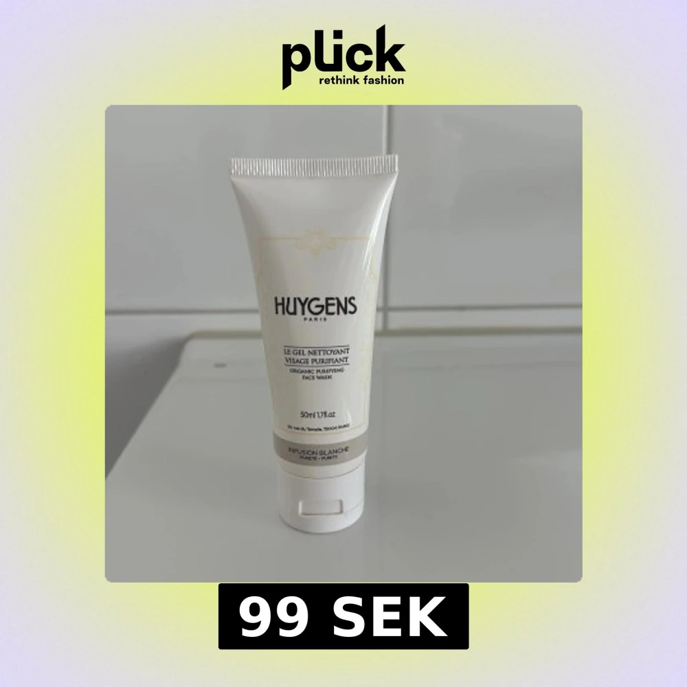En vit tub med Huygens Paris Le Gel Nettoyant Visage Purifiant, en ekologisk ansiktsrengöring på 50 ml. Innehåller naturliga ingredienser och är parfymfri. Perfekt för att rengöra huden och balansera talgproduktionen. Smidig att ta med i väskan.
