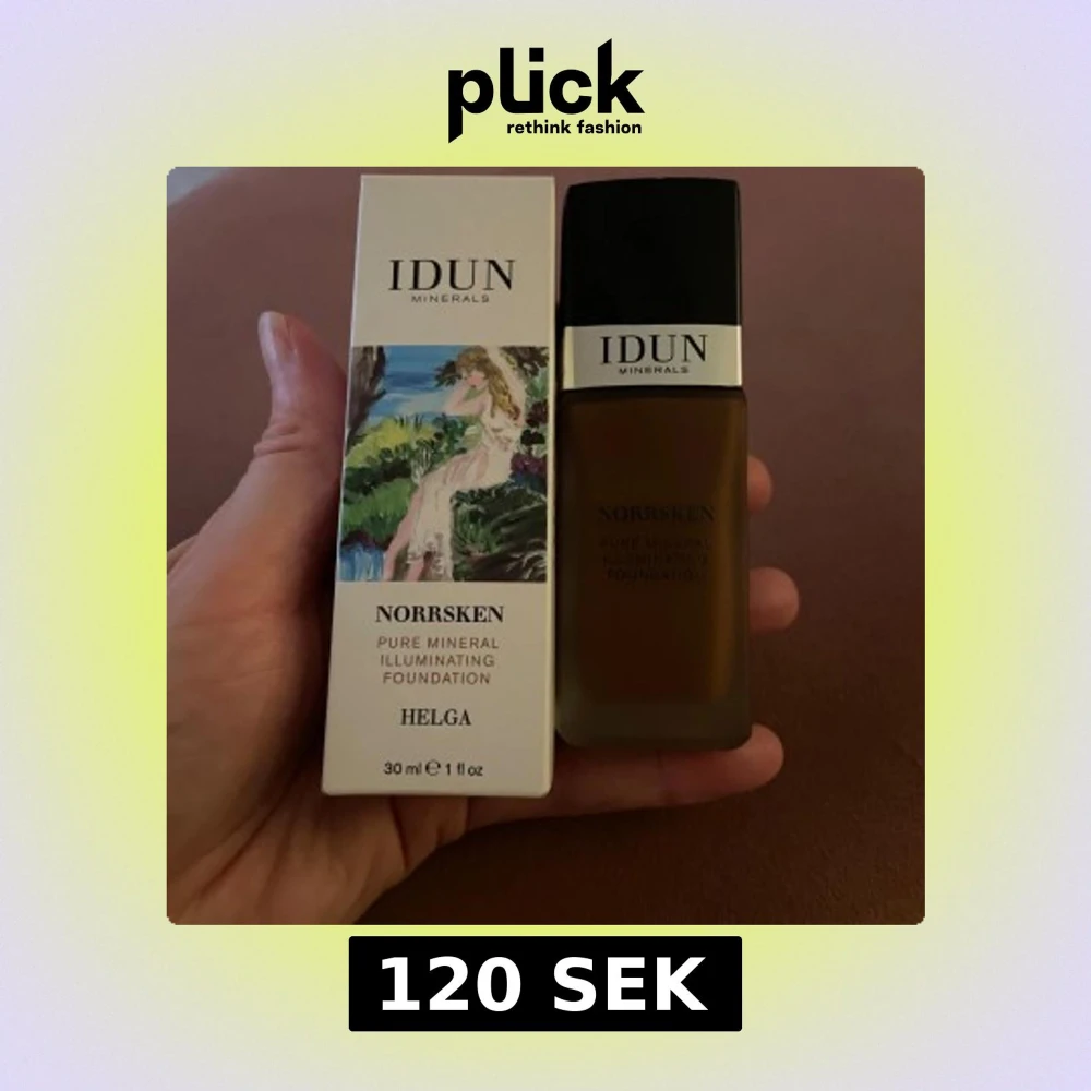 IDUN Minerals Norrsken Pure Mineral Illuminating Foundation i nyansen Helga (deep 227). Flytande foundation i glasflaska med svart lock, 30 ml. Ger en naturlig lyster och är mineralbaserad. Kommer i en snygg förpackning med konstmotiv.