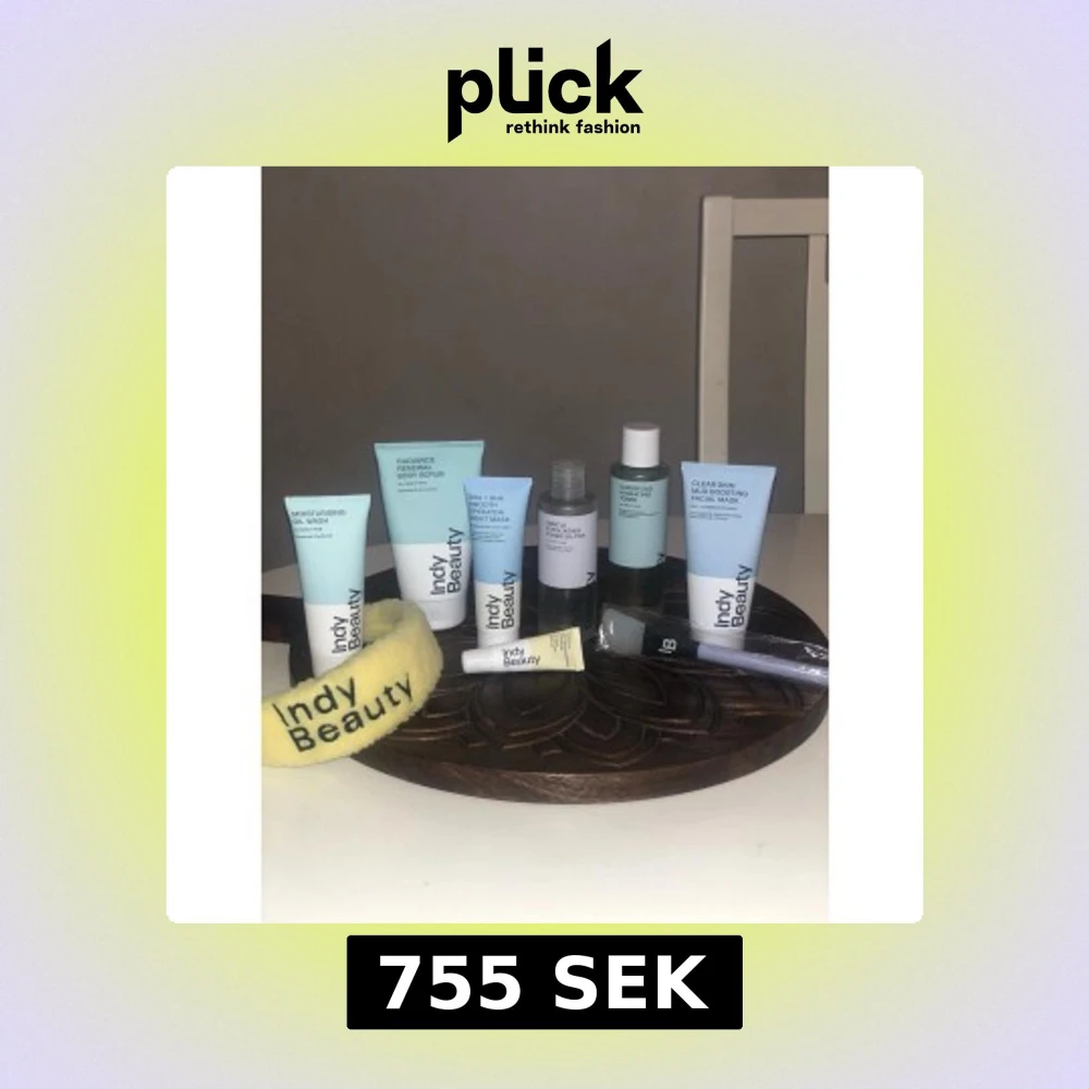 Säljer ett komplett ansiktsvårdsset/kroppsvårdsset från Indy Beauty med toner, ansiktsmask (rengöring och nattmask), oljetvätt, body scrub och en sminkborste (spatel). Setet innehåller även ett gult diadem och ett läppbalsam. Produkterna säljs i ett paket - totalt 9 produkter + necessär och kommer från årets julkalender 2025. Produkterna är värda 1026kr (spateln och necessären är ej inräknad i priset). Allt kan bli en perfekt julklapp till någon, eller dig själv!