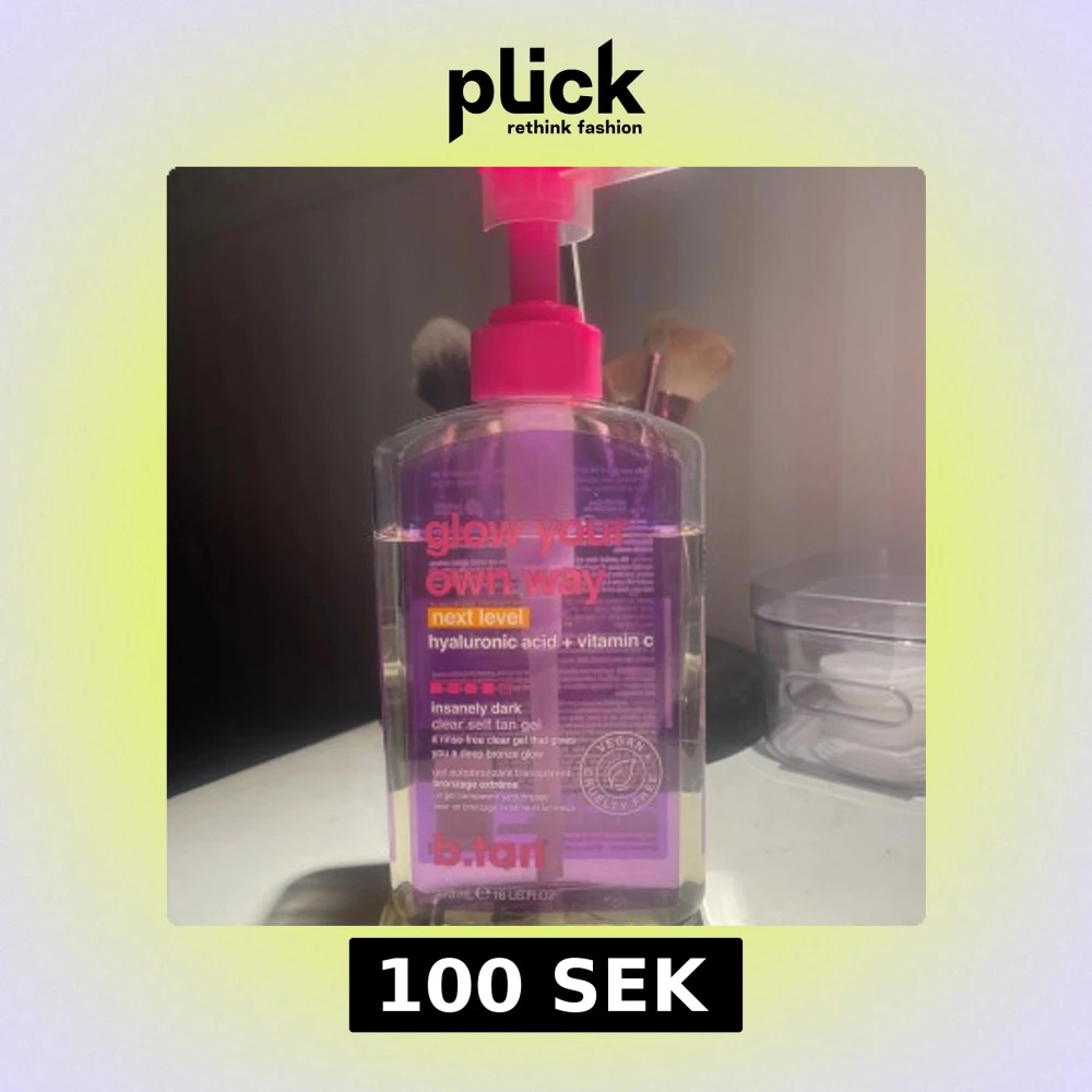 Brun utan sol-gel från b.tan med hyaluronsyra och vitamin C. Ger en djup, bronzig glow utan att behöva sköljas av. Transparent gel i stor pumpflaska på 473 ml, vegansk och cruelty free. Perfekt för dig som vill ha en intensivt mörk solkysst look. Jag har använt den en gång och jag tyckte den var jätte bra och lätt att applicera men jag tyckte den var lite för mörk för mig.