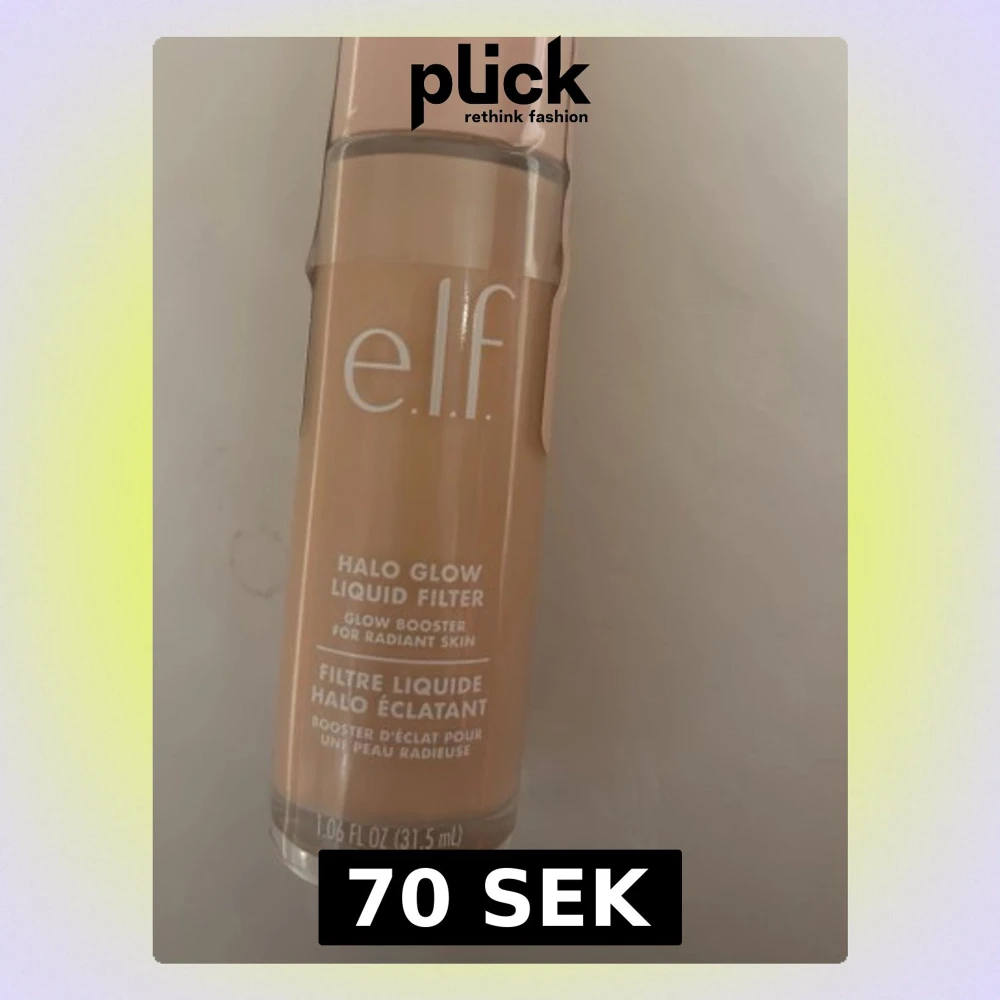 e.l.f. Halo Glow Liquid Filter är en flytande foundation som ger glow och lyster till huden. Kommer i en genomskinlig plastflaska med rosa lock och vit text. Perfekt för dig som vill ha en naturlig, strålande finish. Färg 1
