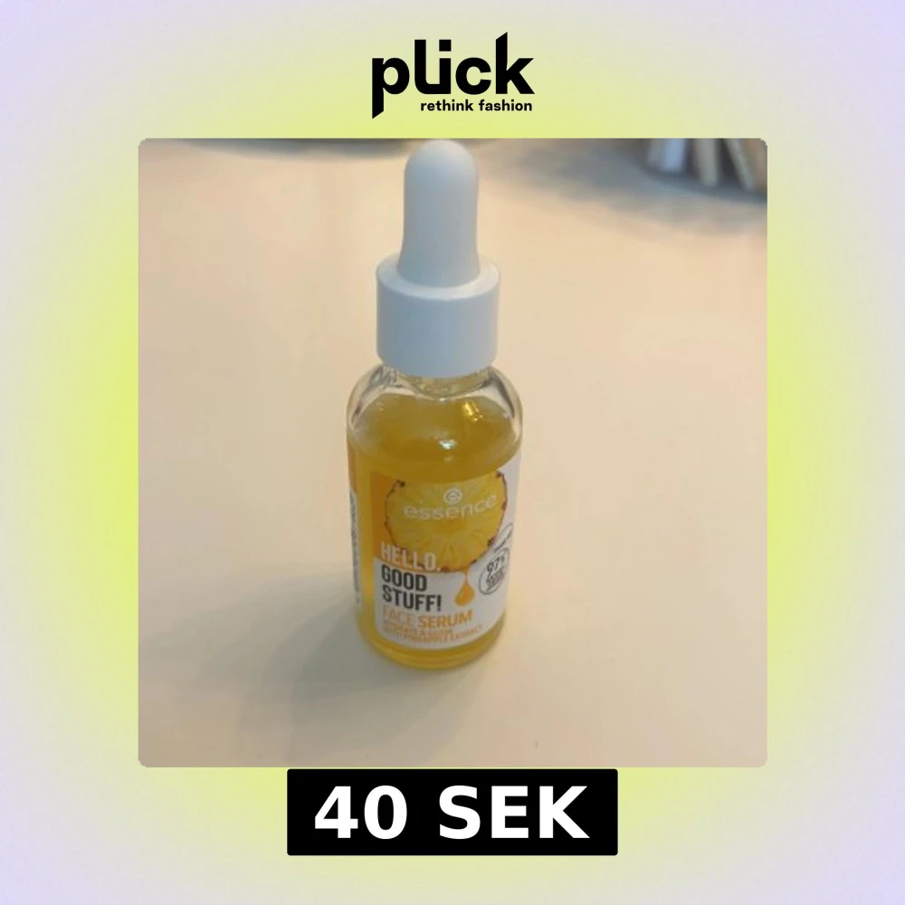 Essence Hello, Good Stuff! Face Serum med ananasextrakt. Kommer i en genomskinlig glasflaska med vit pipett och guldfärgat serum. Innehåller 97% ingredienser av naturligt ursprung och ger fukt och glow till huden. Perfekt för dig som vill ha en fräsch och återfuktad look.