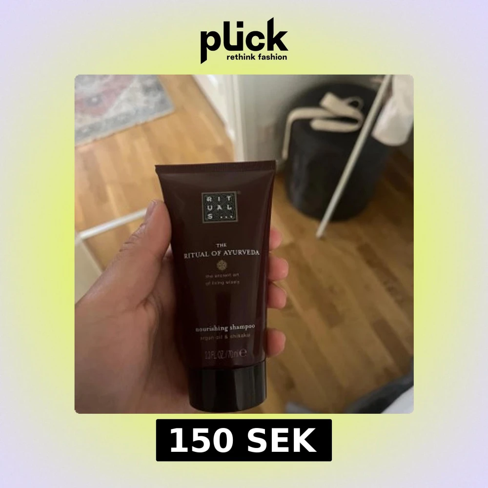 Nourishing shampoo från Rituals The Ritual of Ayurveda med arganolja och shikakai. Tuben är mörkröd med svart lock och rymmer 70 ml. Innehåller 91% ingredienser av naturligt ursprung och har en lyxig känsla.