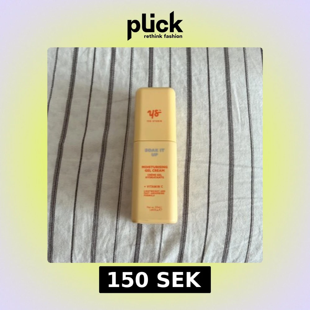 Fräsch ansiktskräm i en ljusgul, fyrkantig plastflaska från Yes Studio. Innehåller vitamin C och har en lätt gel-formula som återfuktar huden. Cruelty free och vegansk produkt med smart pumpfunktion. Perfekt att ha med i väskan för en snabb boost.