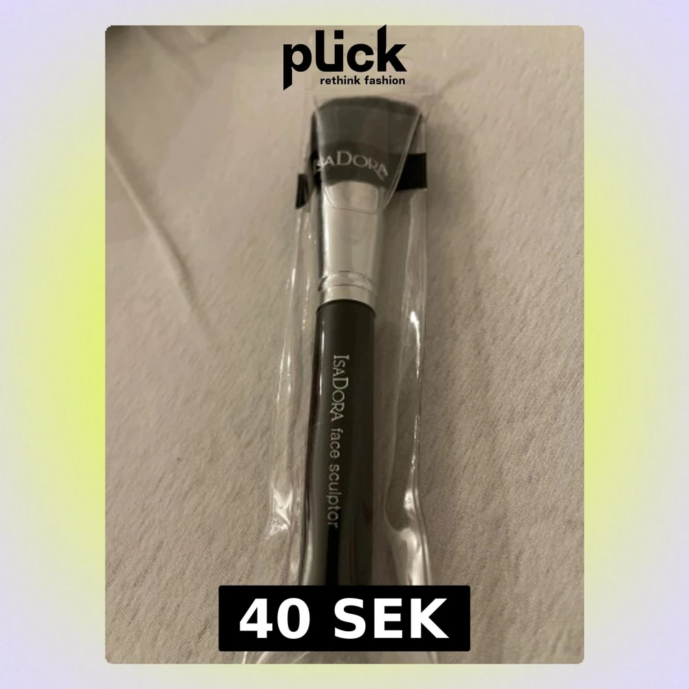 Sminkborste från Isadora, Face Sculptor, med svart handtag och silverfärgad metall vid borsthuvudet. Borsten är tät och mjuk, perfekt för contouring och applicering av bronzer eller highlighter. Kommer i originalförpackning.