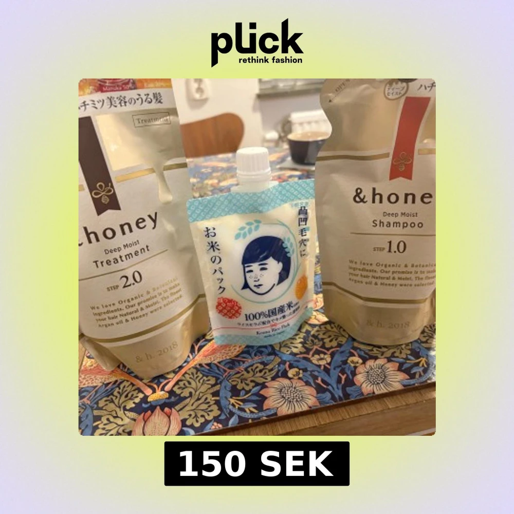 Japansk ansiktsmask Keana Rice Pack 170gr öppnad men helt oanvänd! & honey schampo och balsam 350gr refiller båda oöppnade. Har också Fino premium touch (Shiseido) hårmask 230gr oöppnad. All tillverkat och inköpt i Japan detta år. Väldigt omtyckta produkter i och utanför Japan. Schampo/balsam 150kr styck, Hårmask 150kr och Rismasken 100kr
