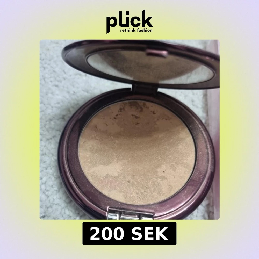 Snygg bronzer i kompaktformat med spegel i locket. Färgen är en varm, guldig-brun ton med lätt skimmer som ger glow till ansiktet. Perfekt för att framhäva kindbenen eller ge solkysst look. Kommer i ett lila metallic-fodral.