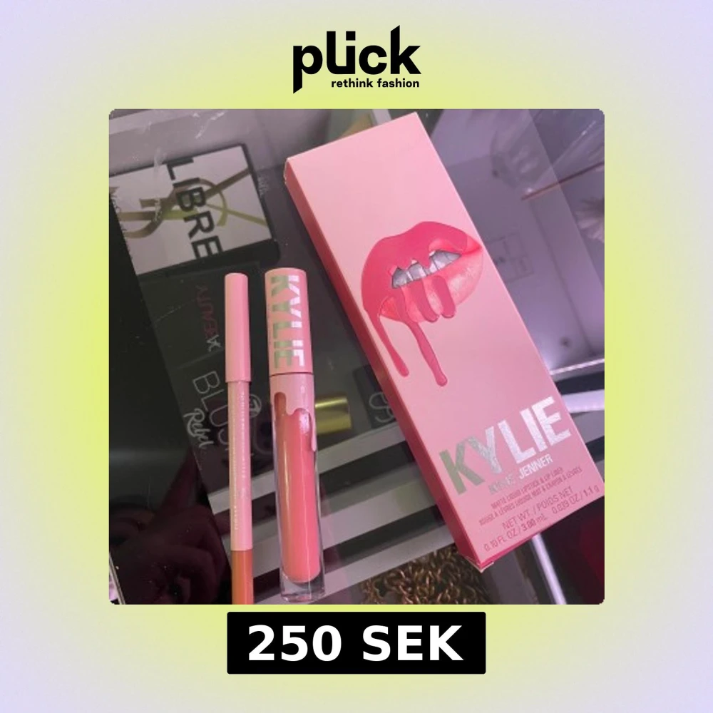 Säljer ett Kylie Jenner Matte Lip Kit i färgen 808. Kitet innehåller ett flytande matt läppstift och en matchande läppenna i en snygg rosa-nude nyans. Förpackningen är rosa med metalliskt tryck och ikoniska läppar. Perfekt för dig som vill ha definierade och fylliga läppar.