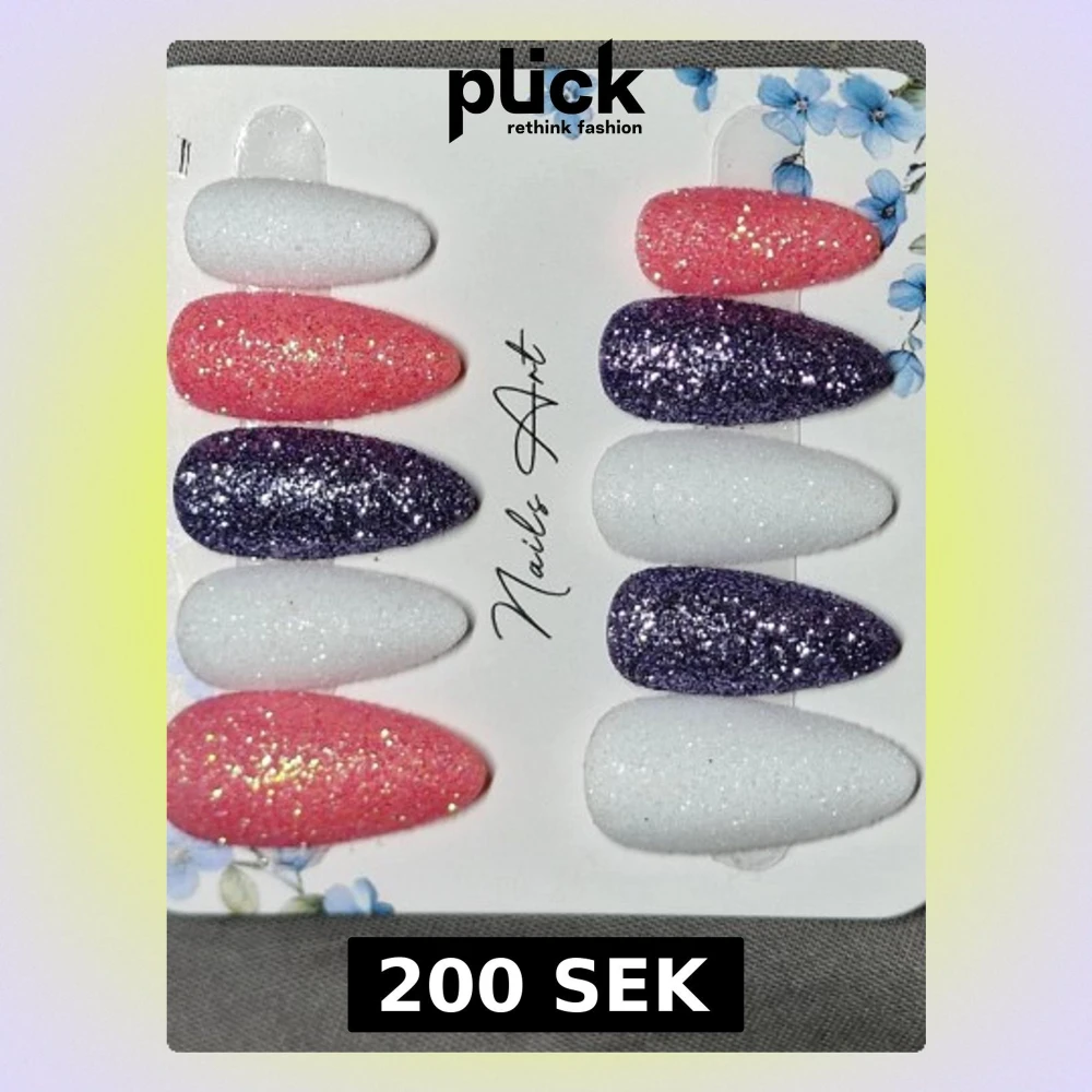 Handgjorda nagel set bra kvalitet och fina. Man får med rengöring beskrivning o de man behöver för att applicera naglarna❤️ storlek L