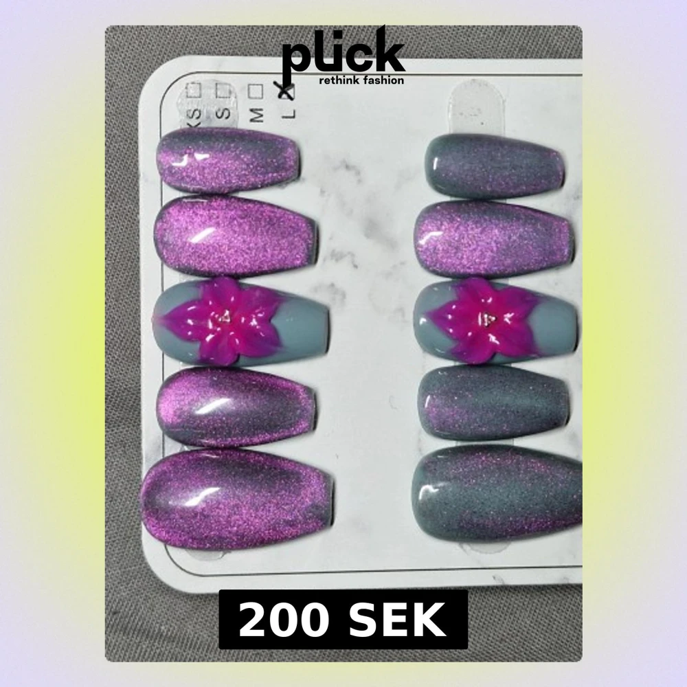 Handgjorda nagel set bra kvalitet och fina. Man får med rengöring beskrivning o de man behöver för att applicera naglarna❤️ storlek L