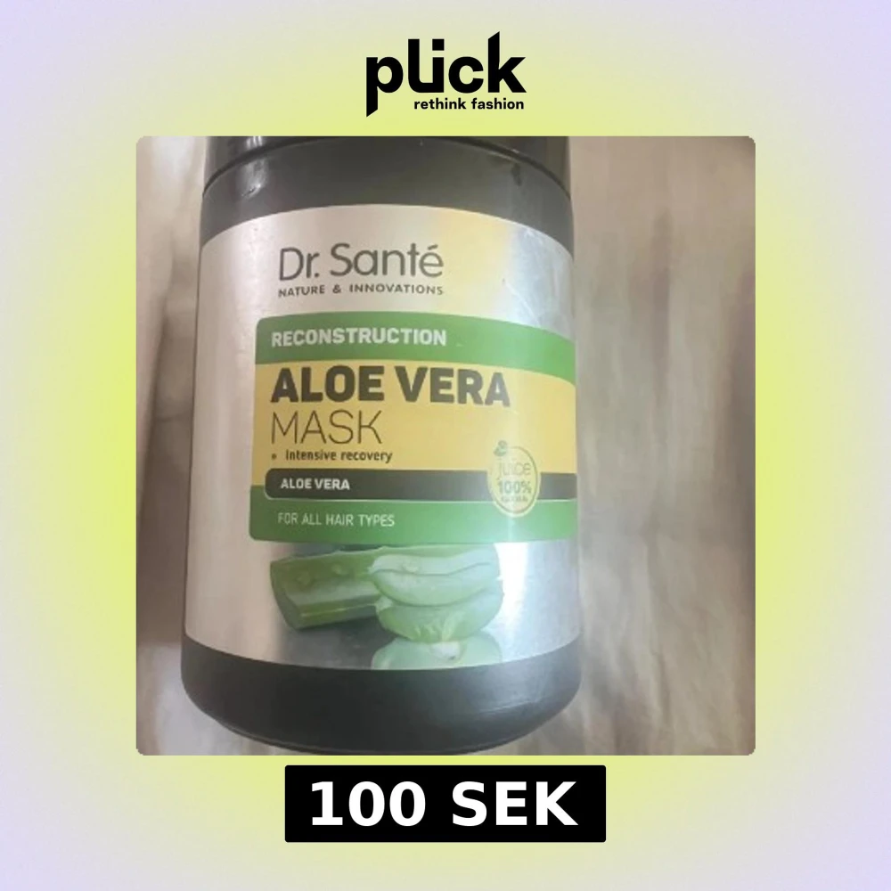 Stor burk med Aloe Vera Mask från Dr. Santé, perfekt för intensiv återfuktning och återuppbyggnad av håret. Innehåller 100% naturlig aloe vera juice och passar alla hårtyper. Vit, krämig konsistens i svart plastburk. Volym: 1000 ml.använde typ fjärde del av den